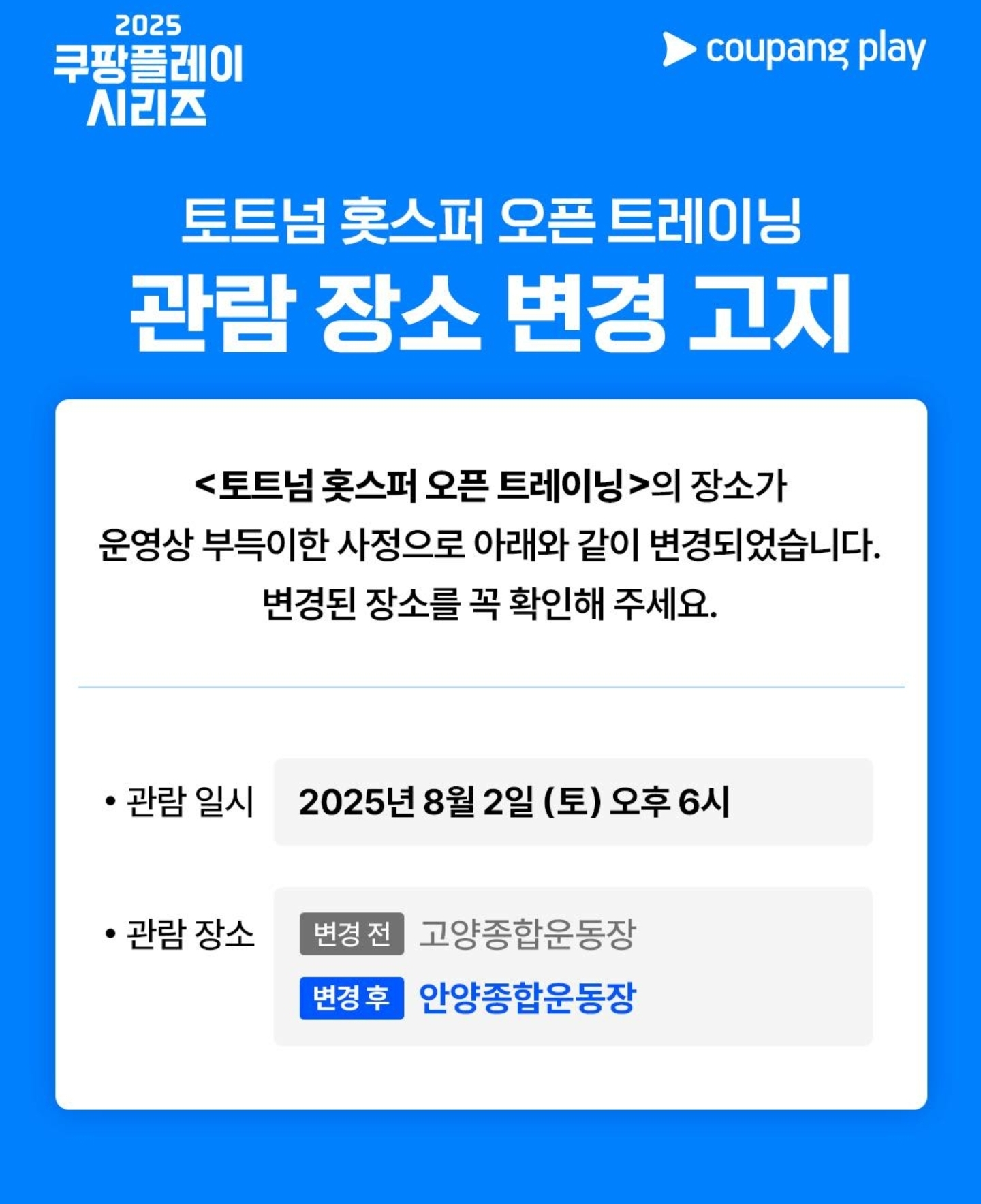 - 장소: 안양종합운동장 (※기존 고양종합운동장에서 변경됨)
