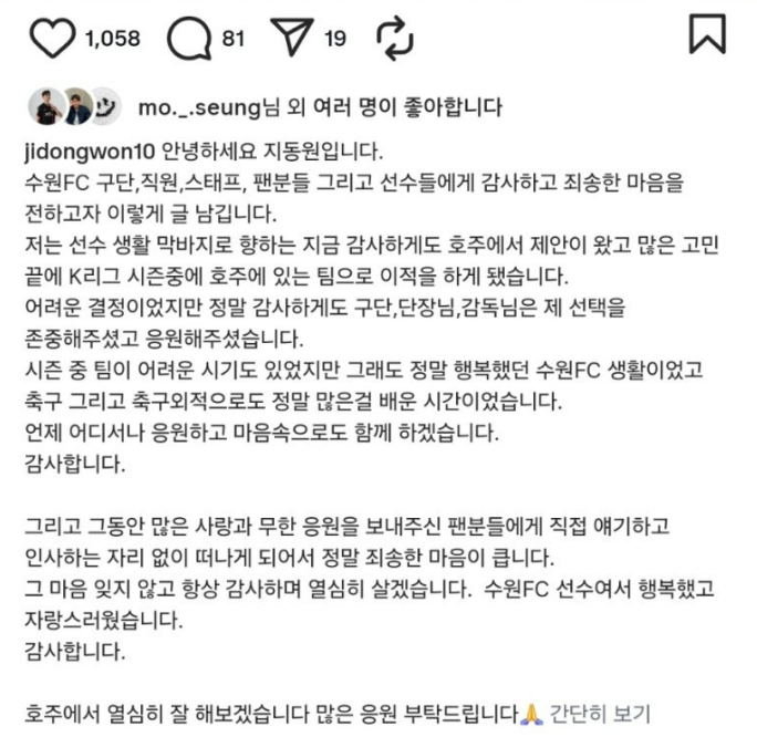✍️ 지동원 이적 소감
